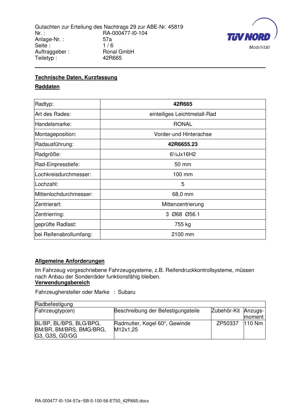 • Stimmt die KBA-Nummer auf der Felge mit diesem Dokument überein?