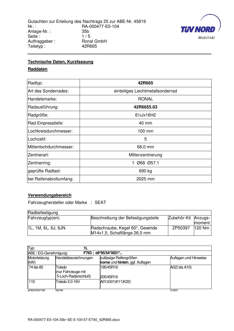 Dieses abe gehört zur Felge Ronal 42R665 in ET0 mit KBA 45819. Die Seite ist dafür gedacht, dass du schnell prüfen kannst, ob KBA, Design und Größe zu deiner Felge passen und danach direkt das richtige PDF lädst.
