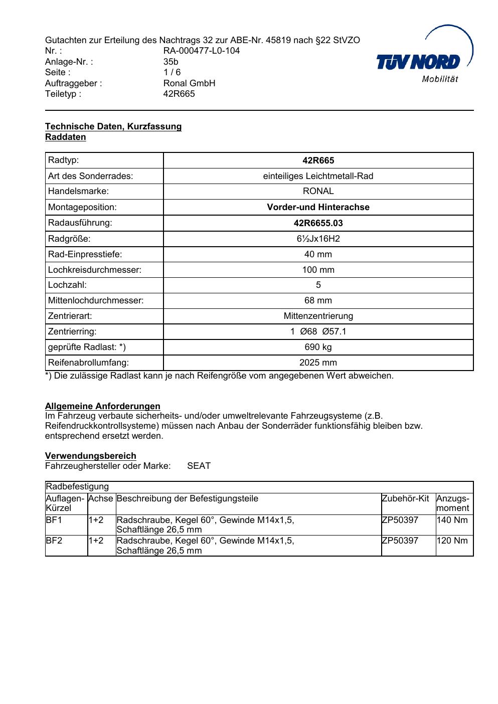 Dieses abe gehört zur Felge Ronal 42R665 in ET0 mit KBA 45819. Die Seite ist dafür gedacht, dass du schnell prüfen kannst, ob KBA, Design und Größe zu deiner Felge passen und danach direkt das richtige PDF lädst.