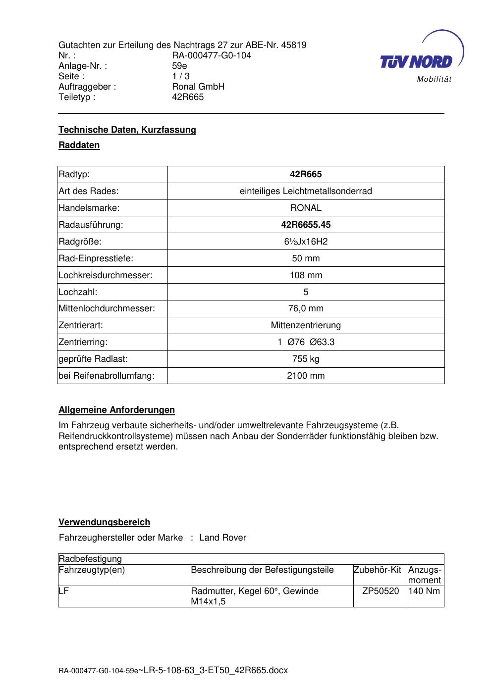 • Stimmt die KBA-Nummer auf der Felge mit diesem Dokument überein?