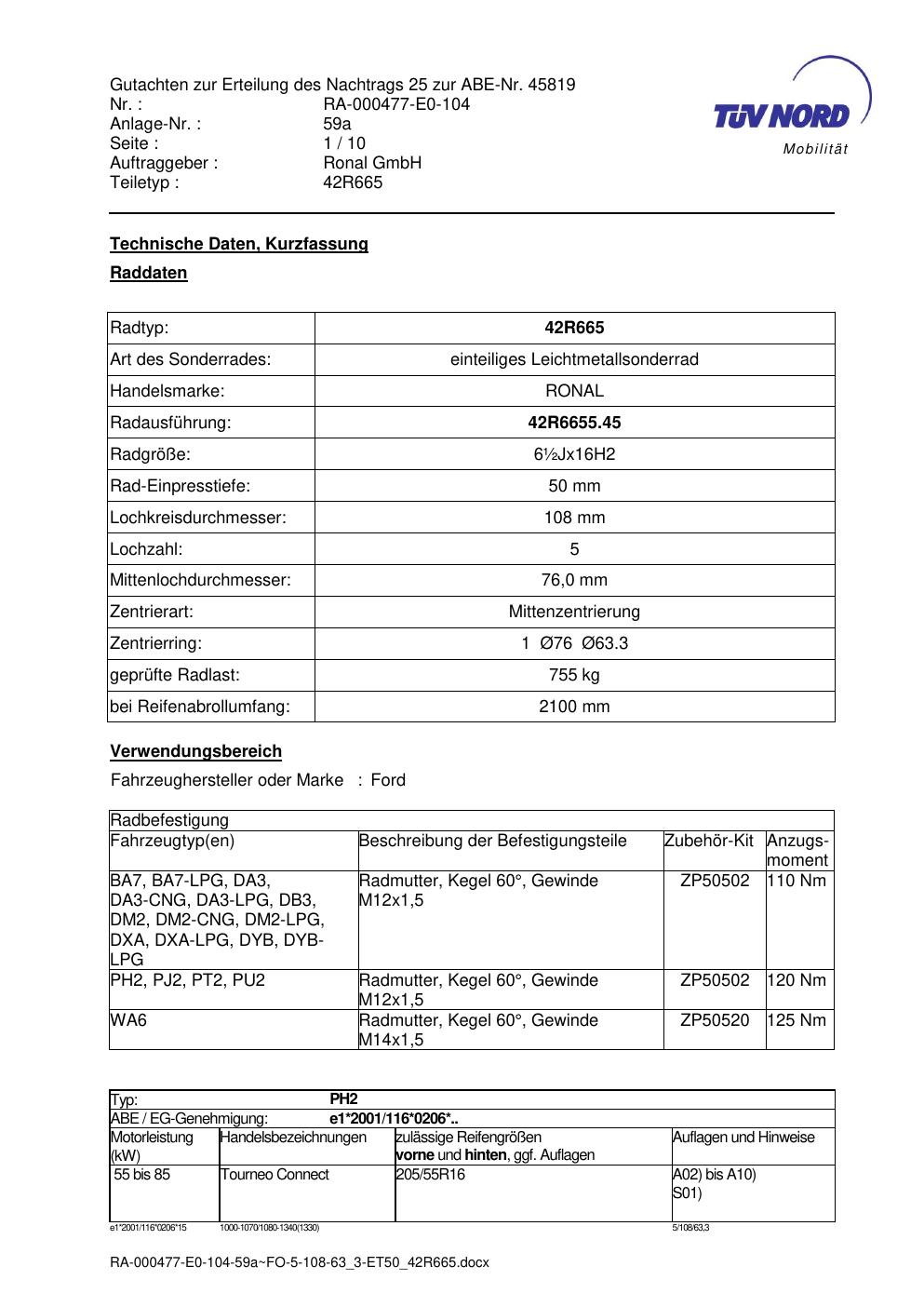 • Stimmt die KBA-Nummer auf der Felge mit diesem Dokument überein?