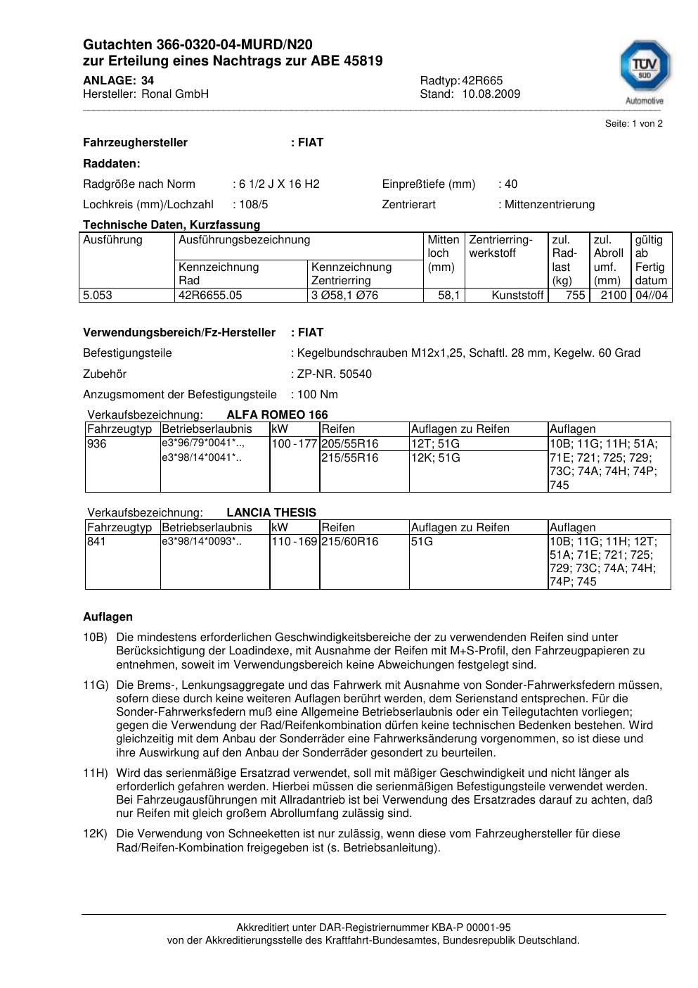 - Stimmt die KBA-Nummer auf der Felge mit diesem Dokument überein?
