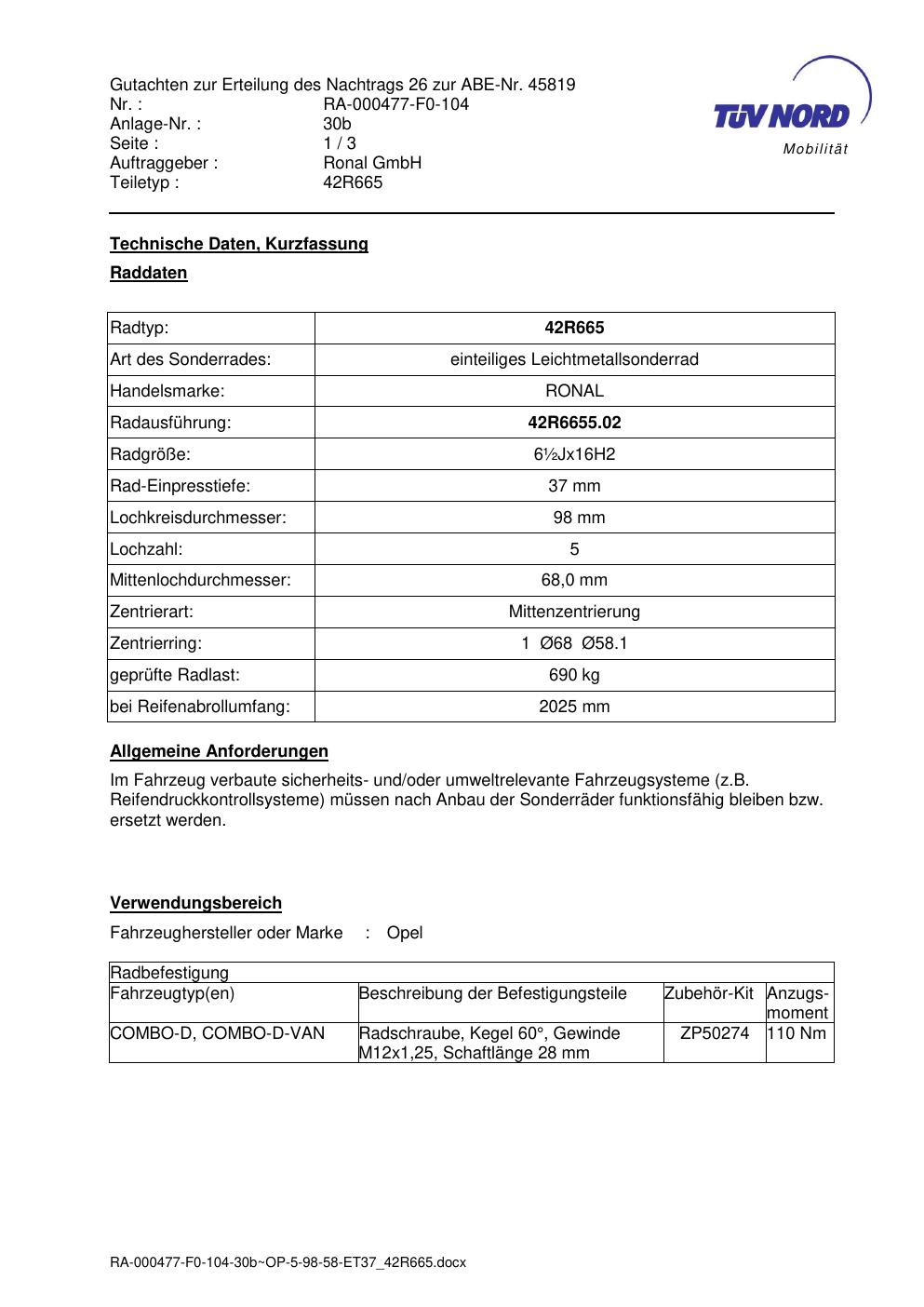 • Stimmt die KBA-Nummer auf der Felge mit diesem Dokument überein?