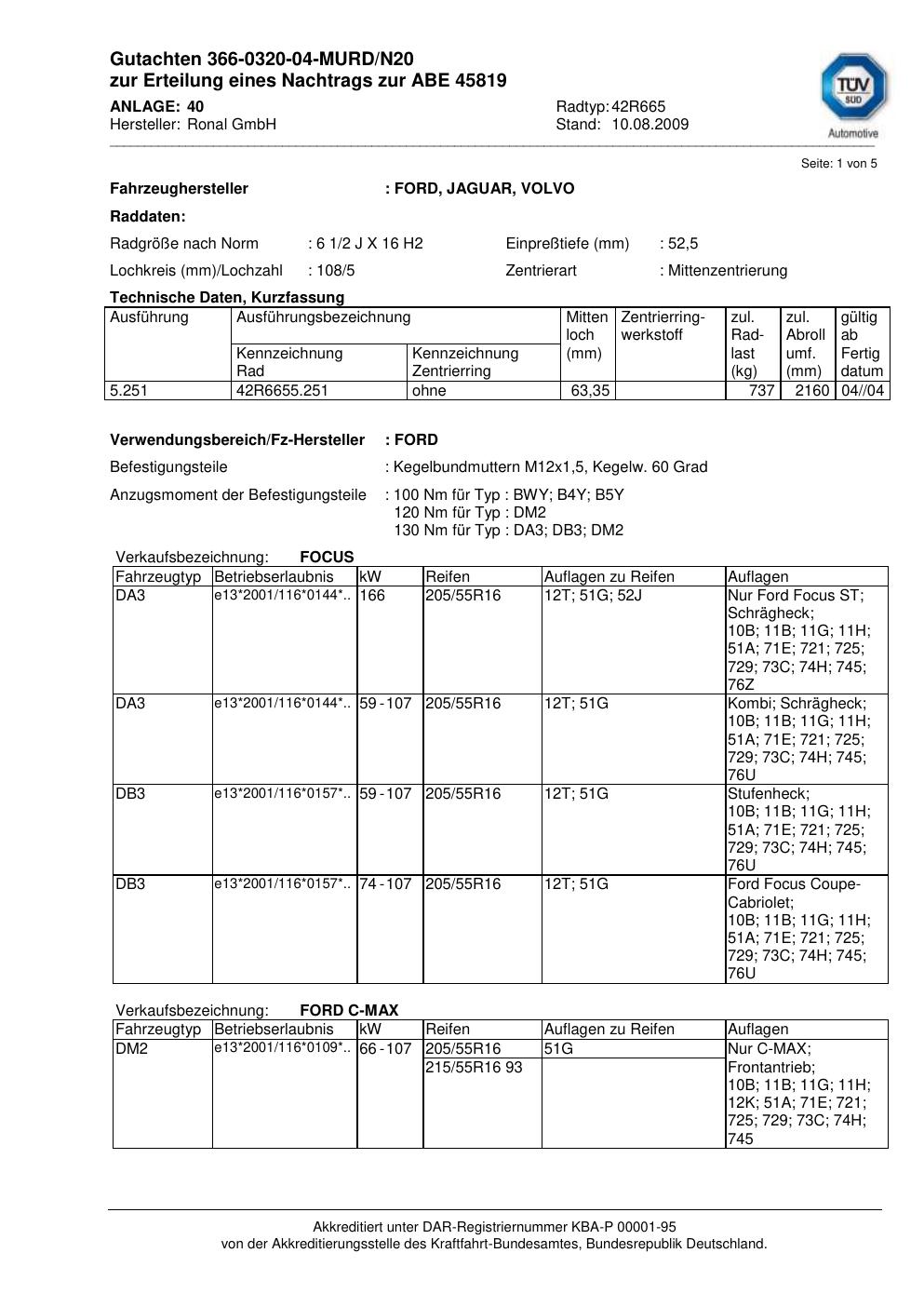• Stimmt die KBA-Nummer auf der Felge mit diesem Dokument überein?