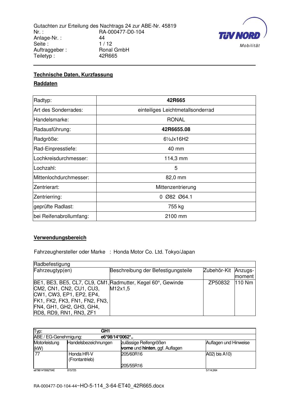 • Stimmt die KBA-Nummer auf der Felge mit diesem Dokument überein?