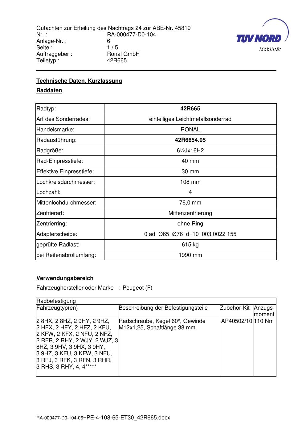 • Stimmt die KBA-Nummer auf der Felge mit diesem Dokument überein?