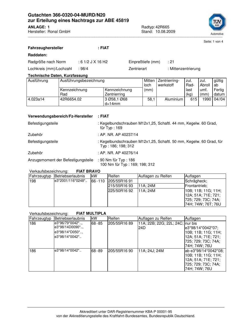 - Stimmt die KBA-Nummer auf der Felge mit diesem Dokument überein?