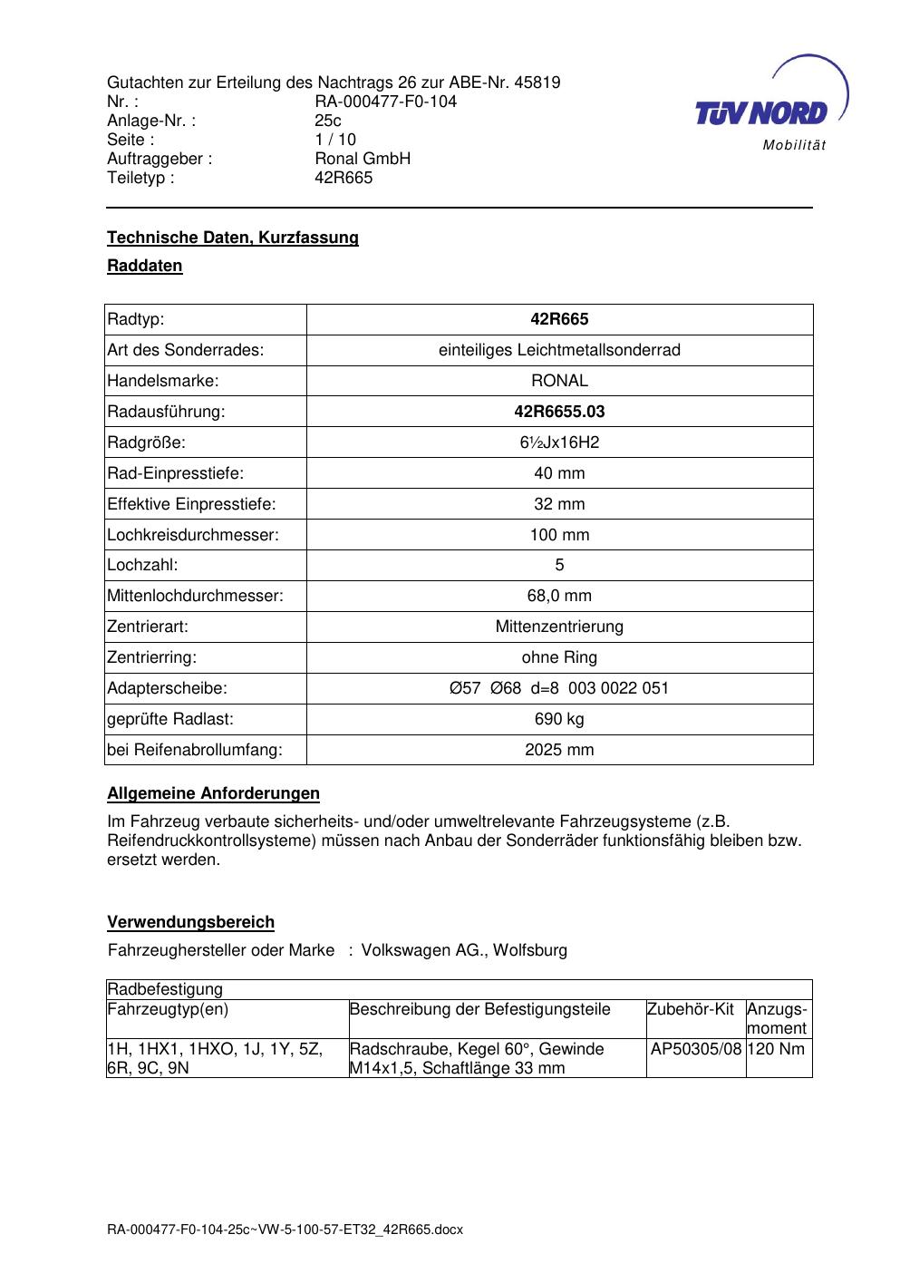 • Stimmt die KBA-Nummer auf der Felge mit diesem Dokument überein?
