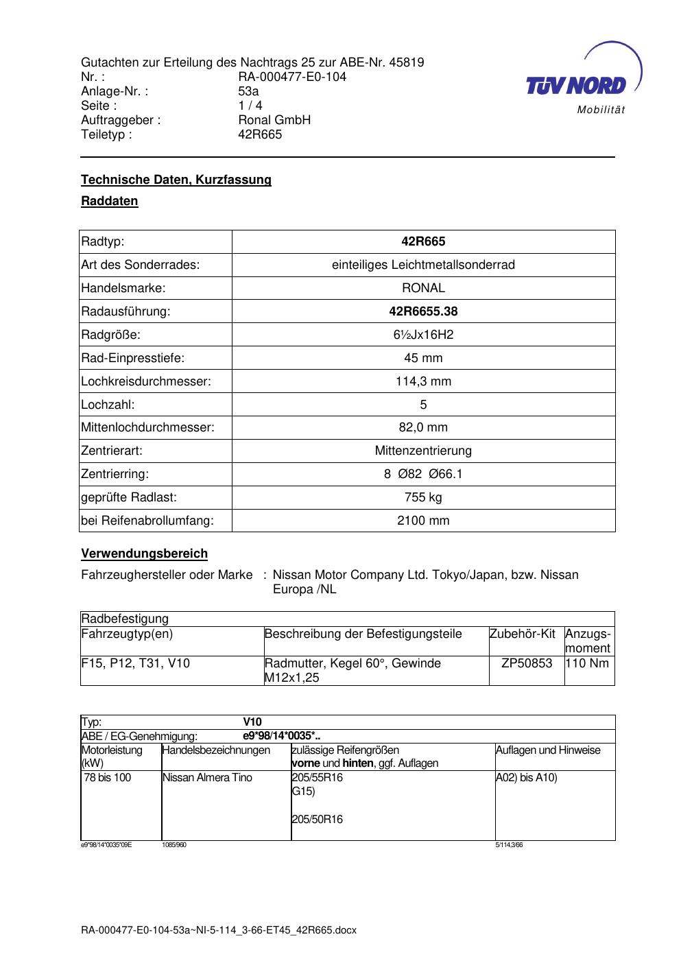 Dieses abe gehört zur Felge Ronal 42R665 in ET0 mit KBA 45819. Die Seite ist dafür gedacht, dass du schnell prüfen kannst, ob KBA, Design und Größe zu deiner Felge passen und danach direkt das richtige PDF lädst.