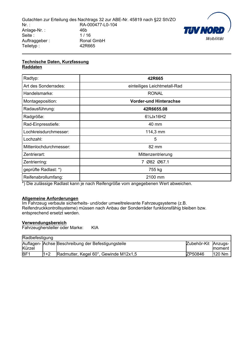 • Stimmt die KBA-Nummer auf der Felge mit diesem Dokument überein?