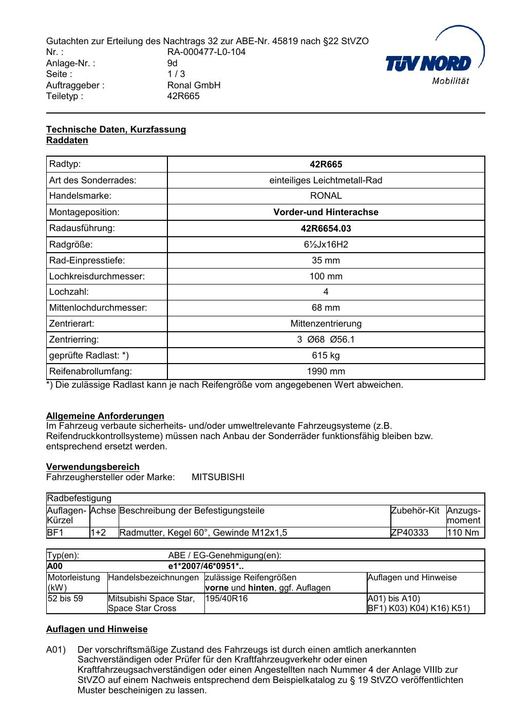 • Stimmt die KBA-Nummer auf der Felge mit diesem Dokument überein?