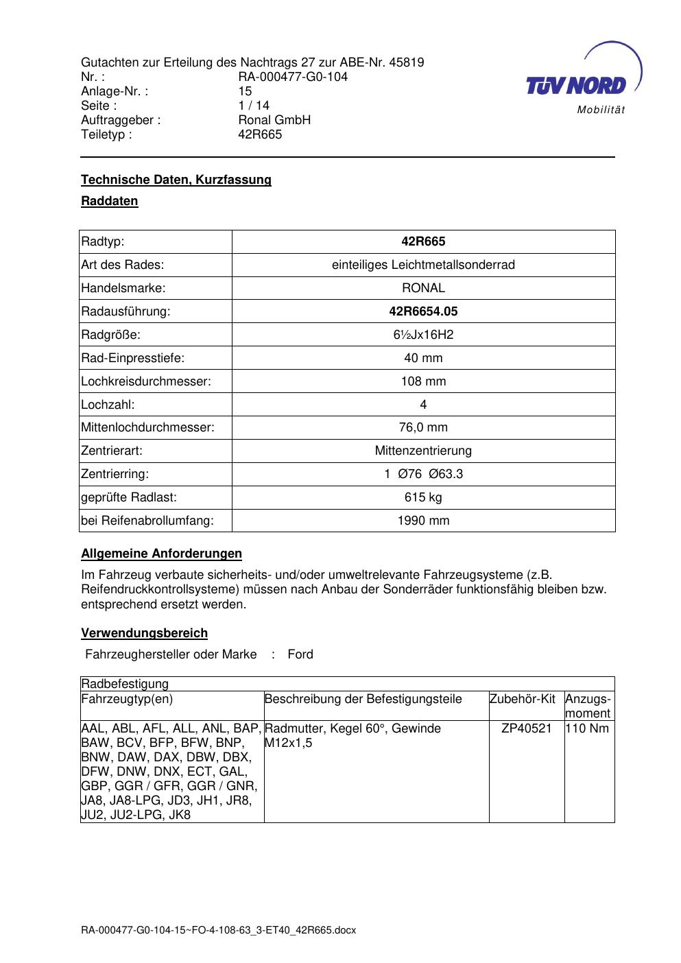 • Stimmt die KBA-Nummer auf der Felge mit diesem Dokument überein?