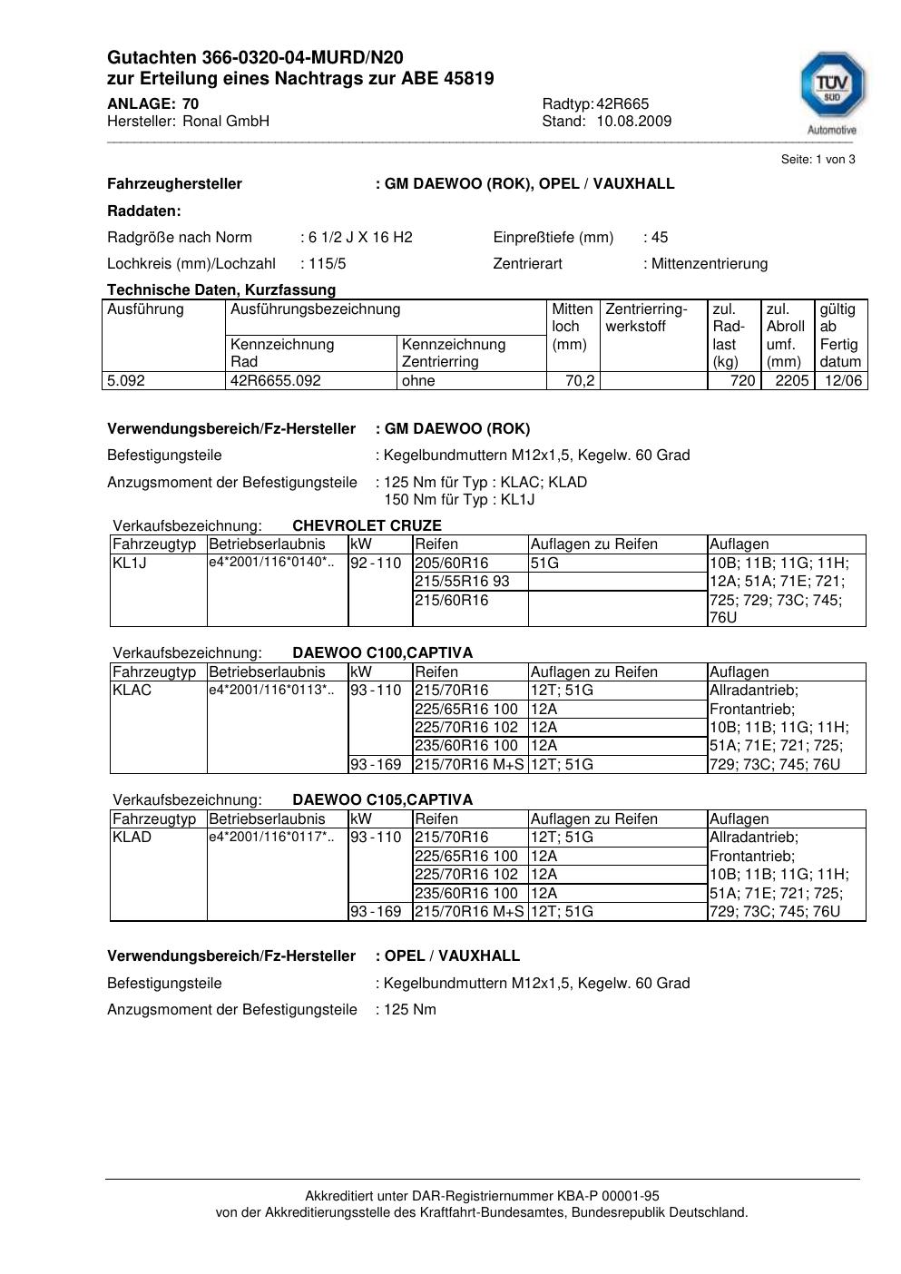 Dieses abe gehört zur Felge Ronal 42R665 in 2Jx16 ET0 mit KBA 45819. Die Seite ist dafür gedacht, dass du schnell prüfen kannst, ob KBA, Design und Größe zu deiner Felge passen und danach direkt das richtige PDF lädst.