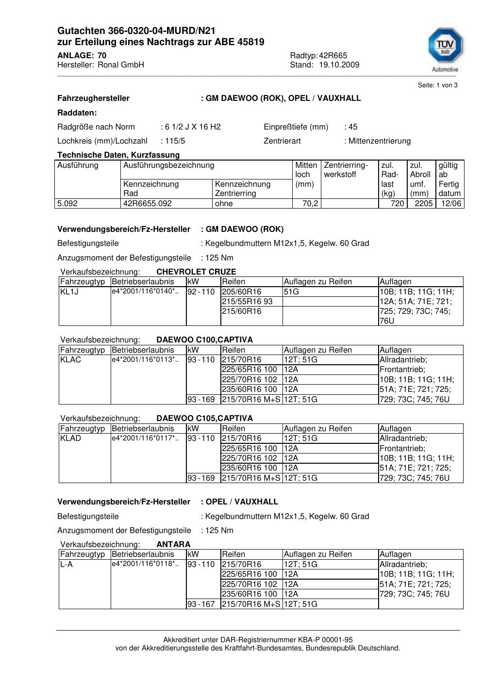 Dieses abe gehört zur Felge Ronal 42R665 in 2Jx16 ET0 mit KBA 45819. Die Seite ist dafür gedacht, dass du schnell prüfen kannst, ob KBA, Design und Größe zu deiner Felge passen und danach direkt das richtige PDF lädst.