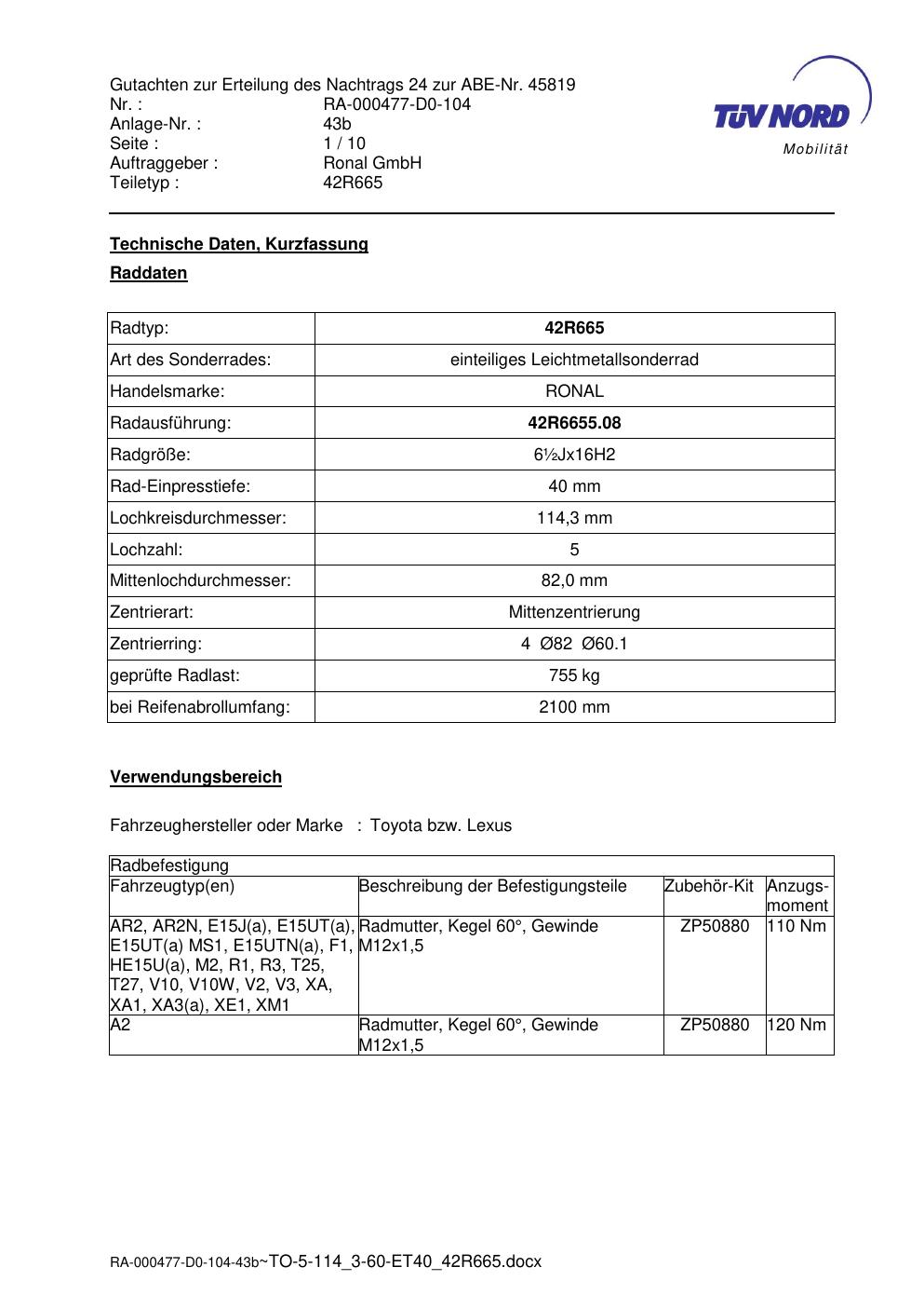 • Stimmt die KBA-Nummer auf der Felge mit diesem Dokument überein?