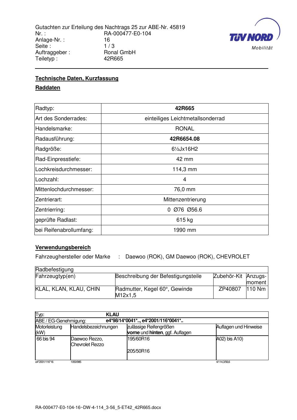 • Stimmt die KBA-Nummer auf der Felge mit diesem Dokument überein?