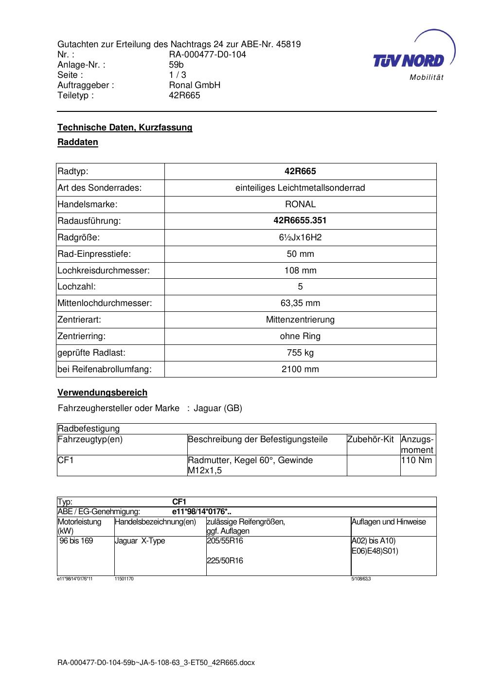 • Stimmt die KBA-Nummer auf der Felge mit diesem Dokument überein?