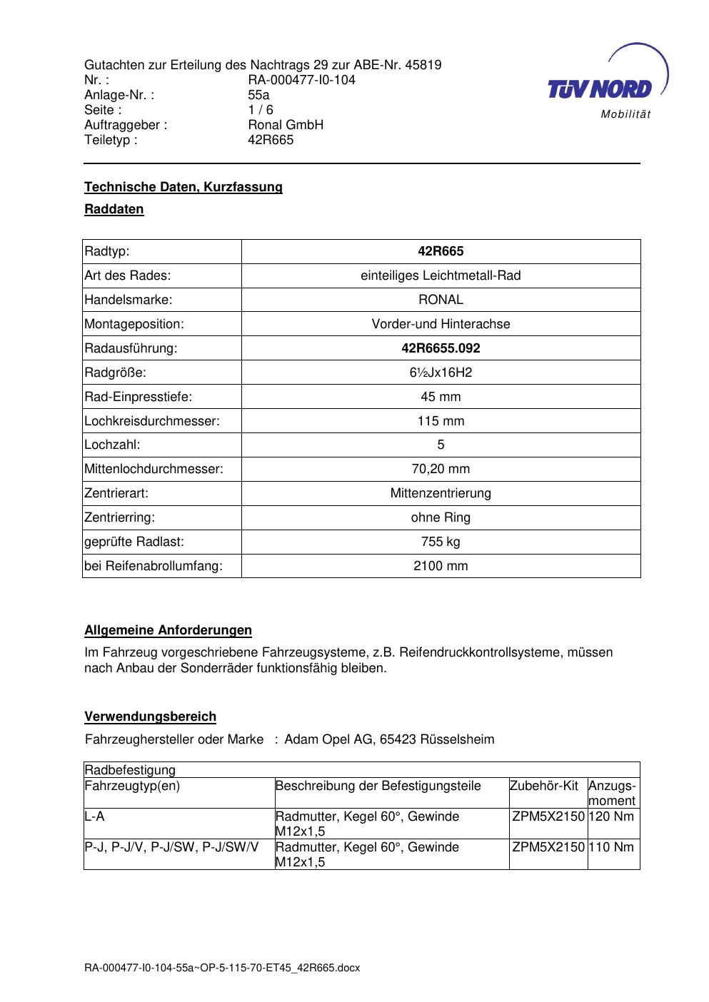 • Stimmt die KBA-Nummer auf der Felge mit diesem Dokument überein?