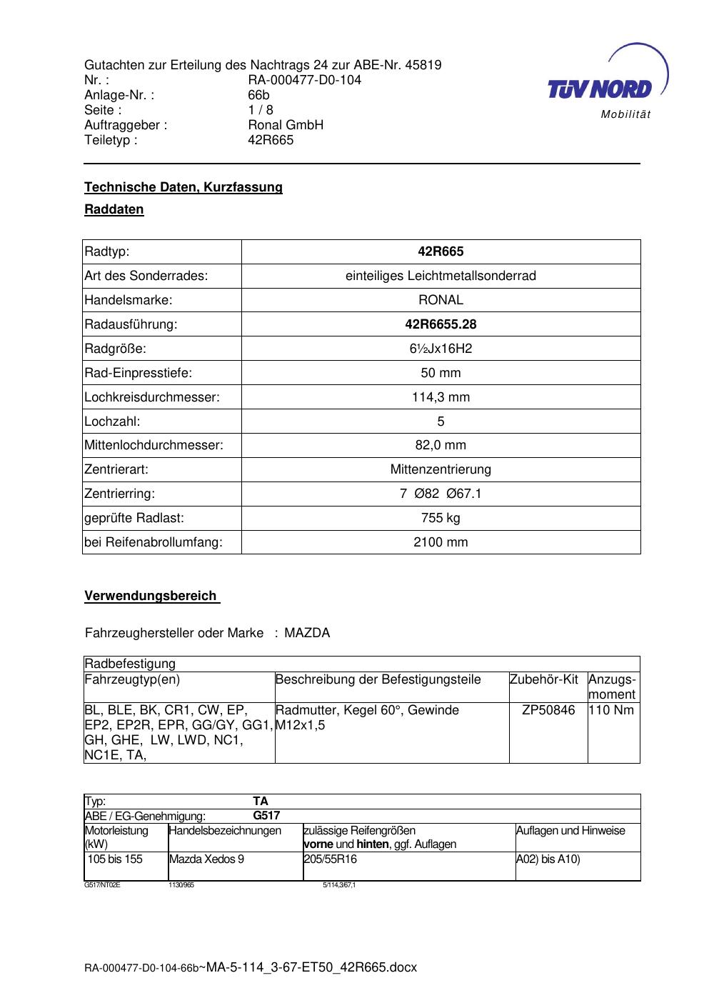 • Stimmt die KBA-Nummer auf der Felge mit diesem Dokument überein?