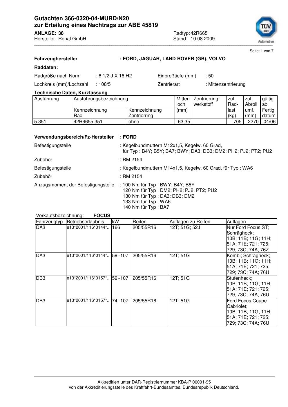 Dieses abe gehört zur Felge Ronal 42R665 in 2Jx16 ET0 mit KBA 45819. Die Seite ist dafür gedacht, dass du schnell prüfen kannst, ob KBA, Design und Größe zu deiner Felge passen und danach direkt das richtige PDF lädst.