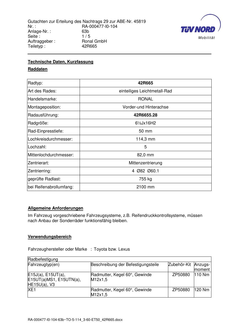 • Stimmt die KBA-Nummer auf der Felge mit diesem Dokument überein?