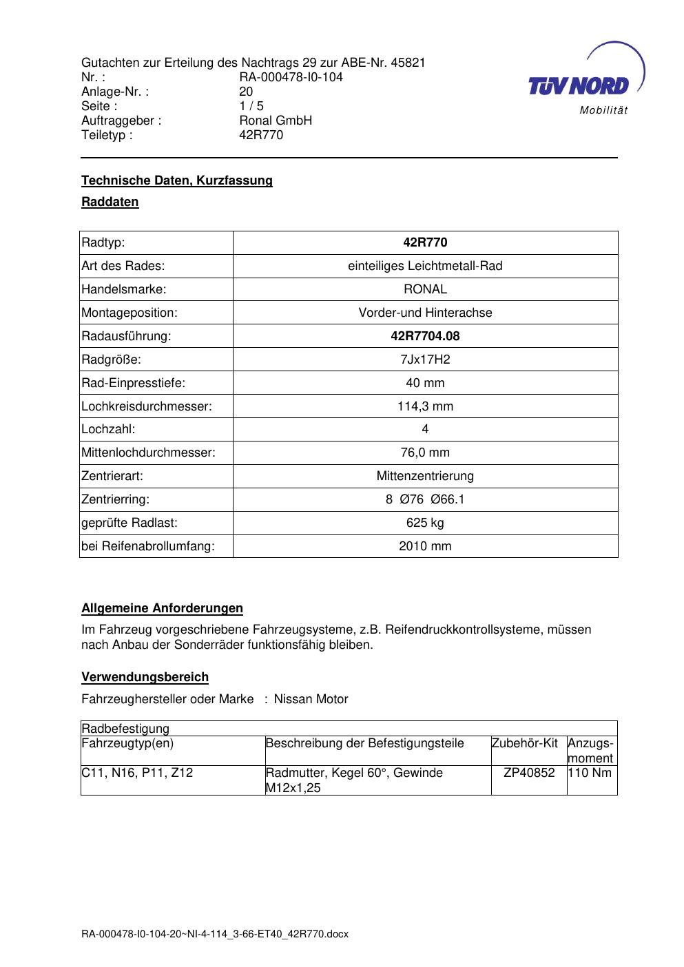 Dieses abe gehört zur Felge Ronal 42R770 in 7Jx17 ET0 mit KBA 45821. Die Seite ist dafür gedacht, dass du schnell prüfen kannst, ob KBA, Design und Größe zu deiner Felge passen und danach direkt das richtige PDF lädst.
