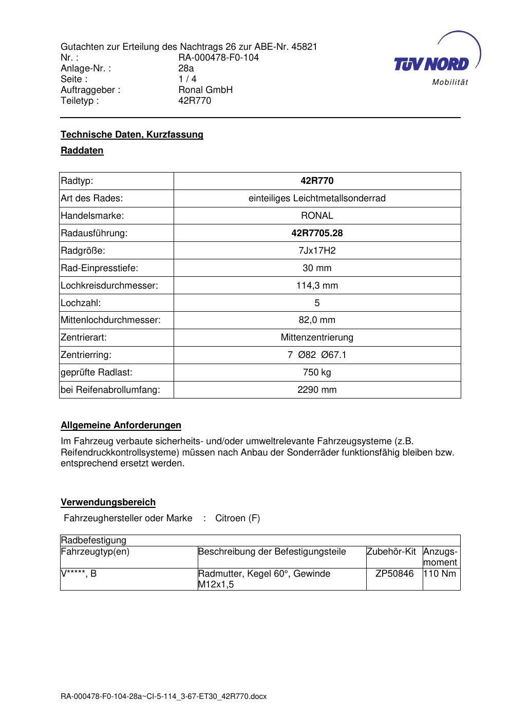 Dieses abe gehört zur Felge Ronal 42R770 in 7Jx17 ET0 mit KBA 45821. Die Seite ist dafür gedacht, dass du schnell prüfen kannst, ob KBA, Design und Größe zu deiner Felge passen und danach direkt das richtige PDF lädst.