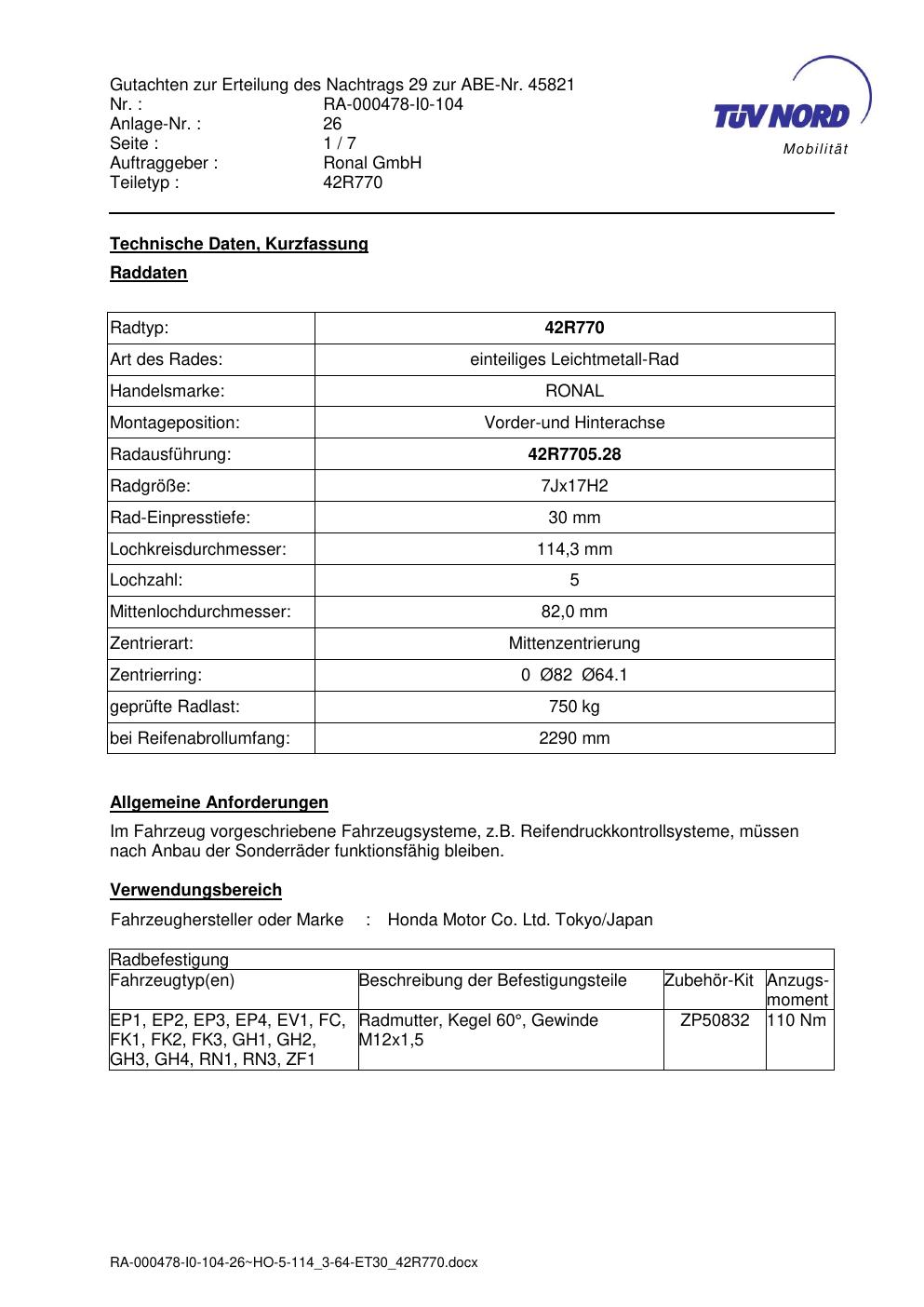 • Stimmt die KBA-Nummer auf der Felge mit diesem Dokument überein?