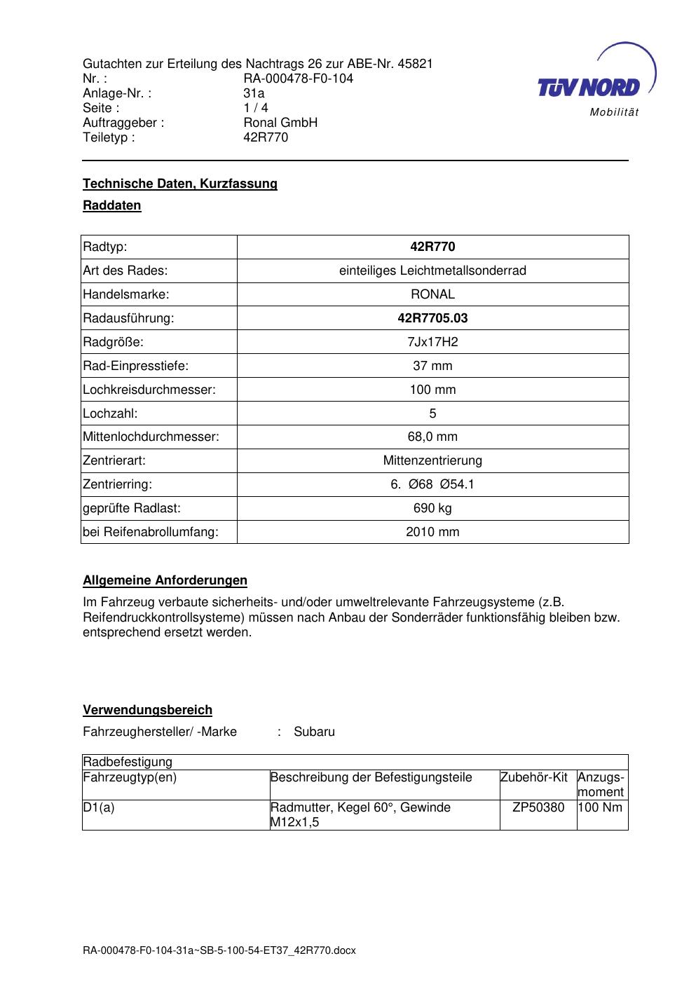 Dieses abe gehört zur Felge Ronal 42R770 in 7Jx17 ET0 mit KBA 45821. Die Seite ist dafür gedacht, dass du schnell prüfen kannst, ob KBA, Design und Größe zu deiner Felge passen und danach direkt das richtige PDF lädst.