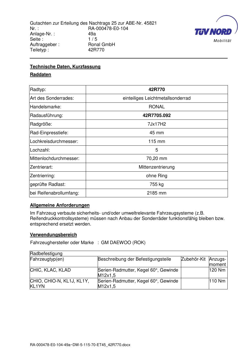 Dieses abe gehört zur Felge Ronal 42R770 in 7Jx17 ET0 mit KBA 45821. Die Seite ist dafür gedacht, dass du schnell prüfen kannst, ob KBA, Design und Größe zu deiner Felge passen und danach direkt das richtige PDF lädst.