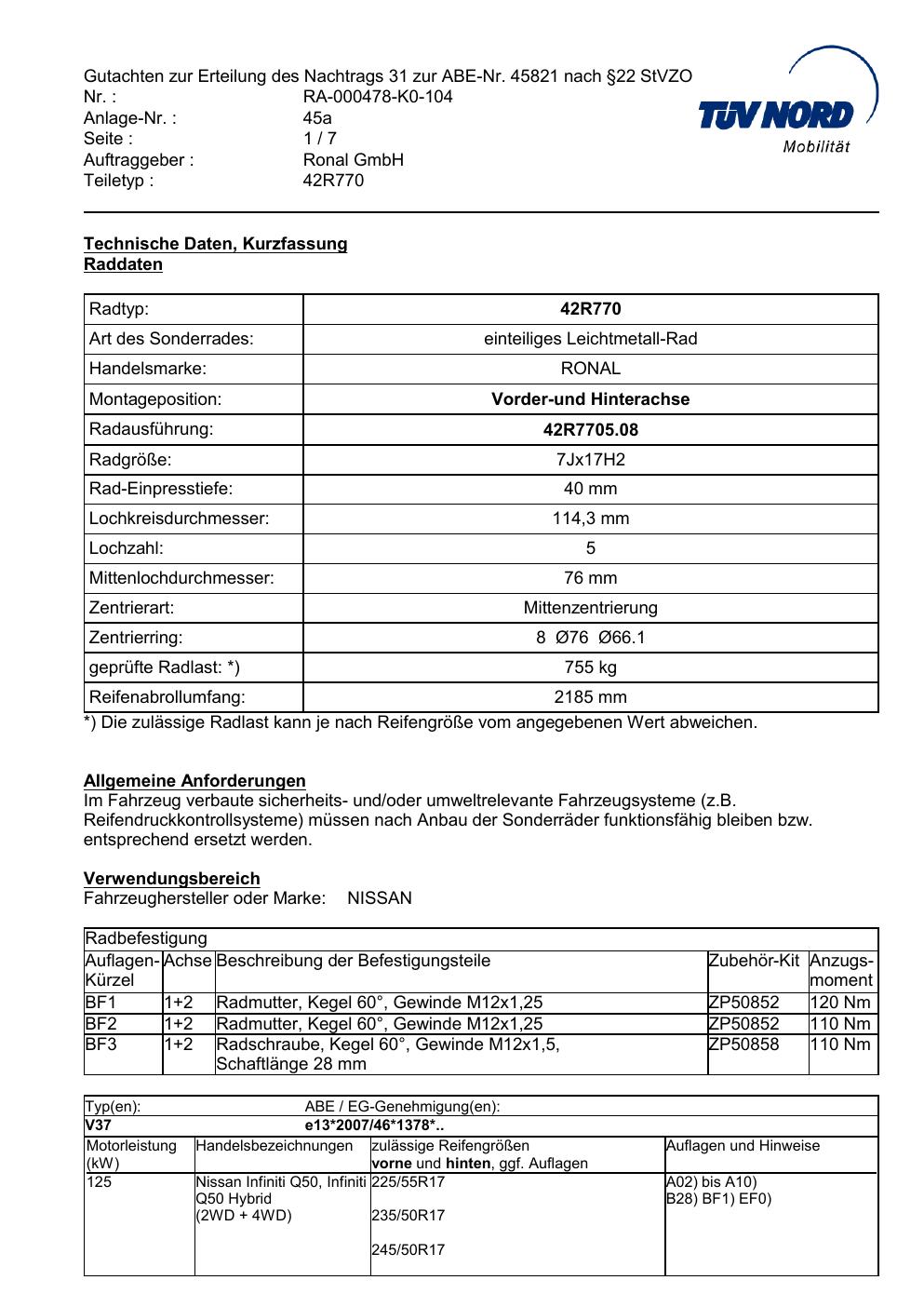 Dieses abe gehört zur Felge Ronal 42R770 in 7Jx17 ET0 mit KBA 45821. Die Seite ist dafür gedacht, dass du schnell prüfen kannst, ob KBA, Design und Größe zu deiner Felge passen und danach direkt das richtige PDF lädst.