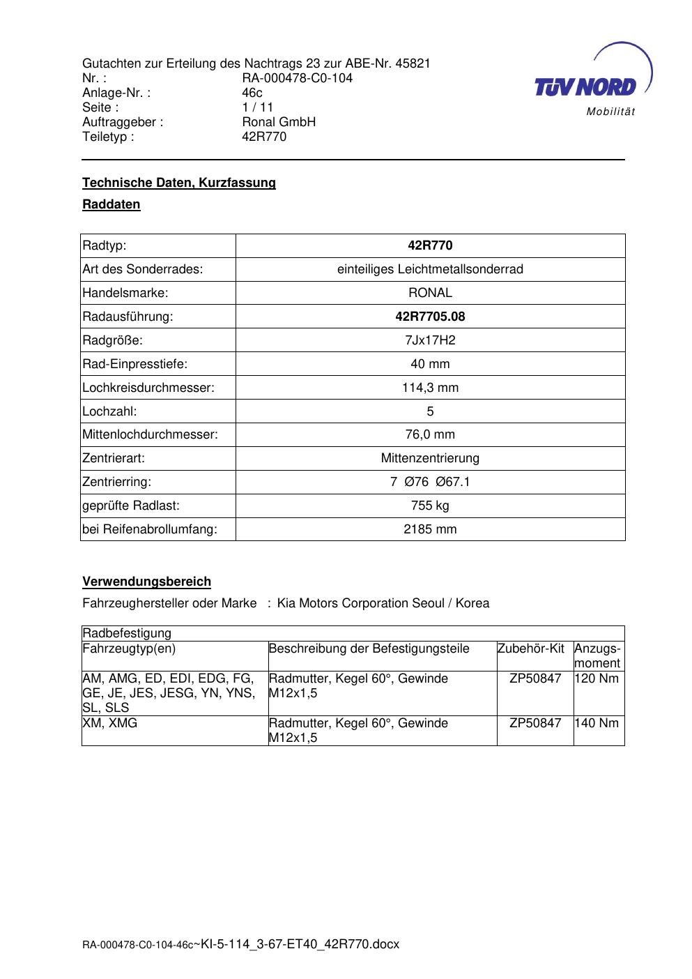 • Stimmt die KBA-Nummer auf der Felge mit diesem Dokument überein?