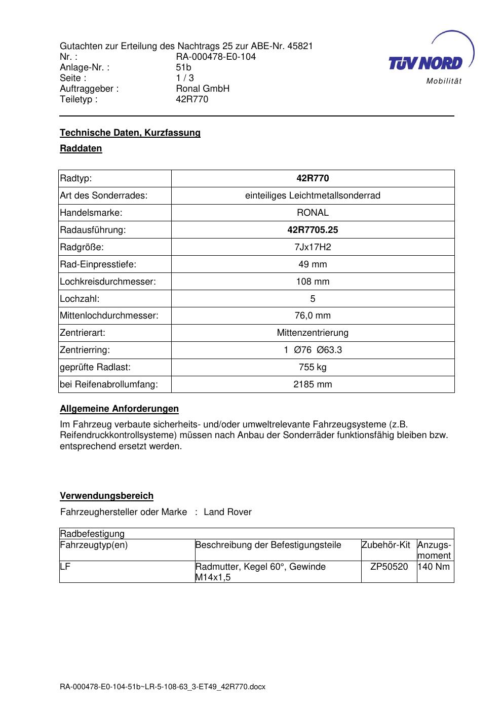 • Stimmt die KBA-Nummer auf der Felge mit diesem Dokument überein?