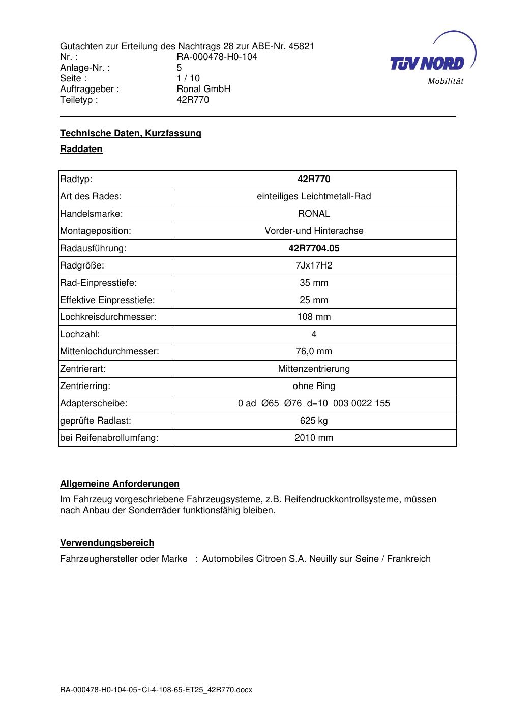 Dieses abe gehört zur Felge Ronal 42R770 in 7Jx17 ET0 mit KBA 45821. Die Seite ist dafür gedacht, dass du schnell prüfen kannst, ob KBA, Design und Größe zu deiner Felge passen und danach direkt das richtige PDF lädst.