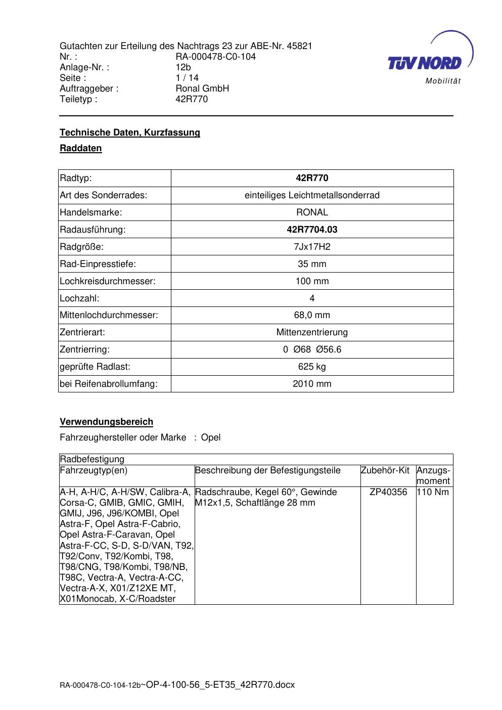 Dieses abe gehört zur Felge Ronal 42R770 in 7Jx17 ET0 mit KBA 45821. Die Seite ist dafür gedacht, dass du schnell prüfen kannst, ob KBA, Design und Größe zu deiner Felge passen und danach direkt das richtige PDF lädst.