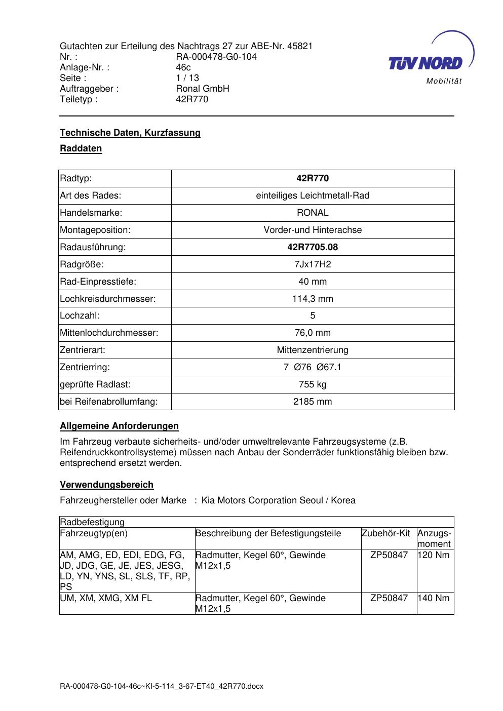 • Stimmt die KBA-Nummer auf der Felge mit diesem Dokument überein?