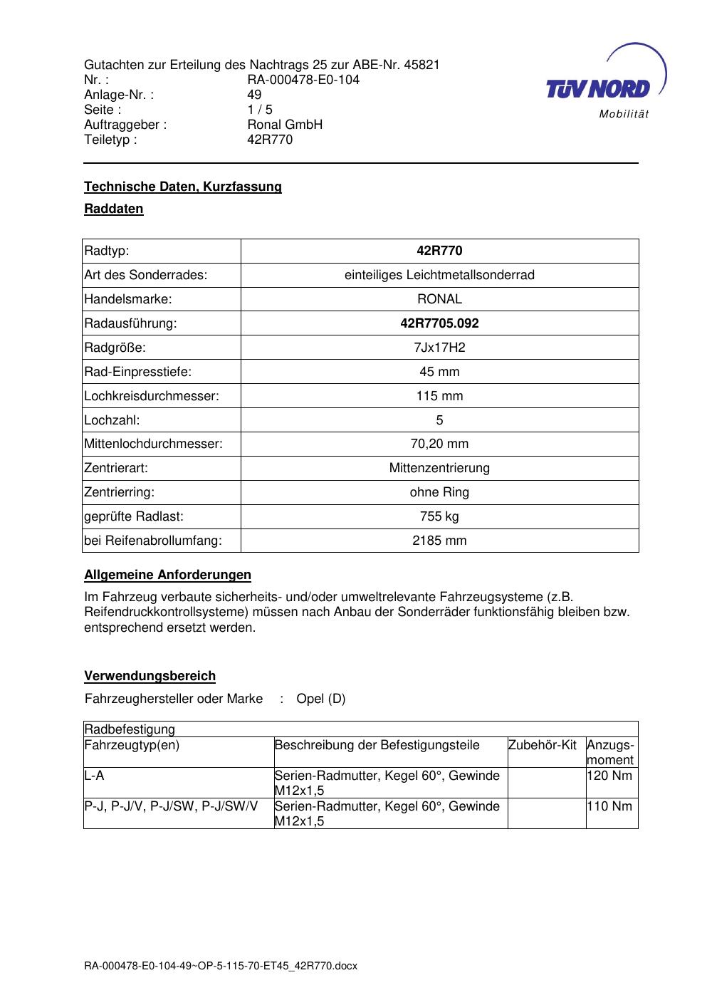 Dieses abe gehört zur Felge Ronal 42R770 in 7Jx17 ET0 mit KBA 45821. Die Seite ist dafür gedacht, dass du schnell prüfen kannst, ob KBA, Design und Größe zu deiner Felge passen und danach direkt das richtige PDF lädst.