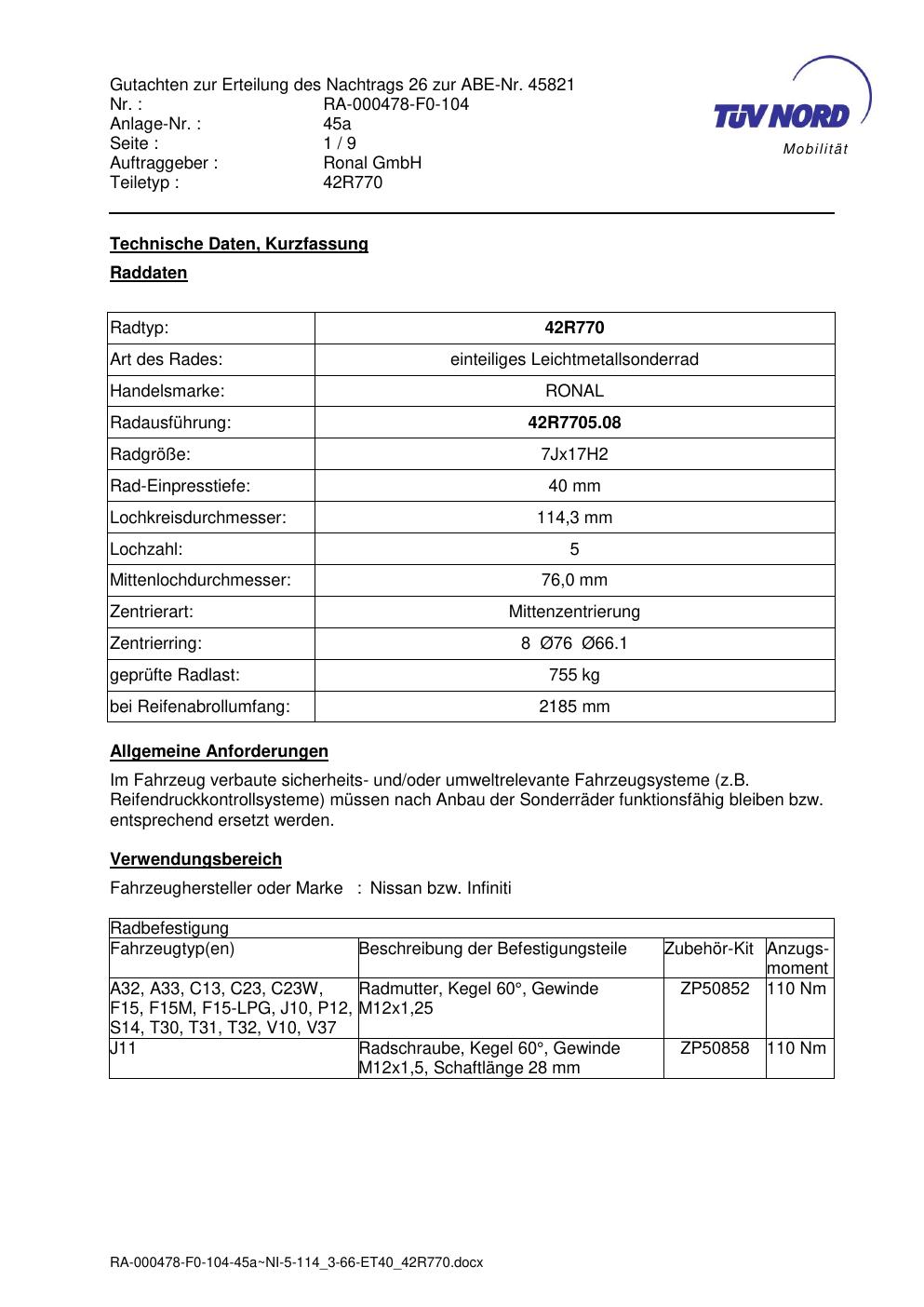 Dieses abe gehört zur Felge Ronal 42R770 in 7Jx17 ET0 mit KBA 45821. Die Seite ist dafür gedacht, dass du schnell prüfen kannst, ob KBA, Design und Größe zu deiner Felge passen und danach direkt das richtige PDF lädst.