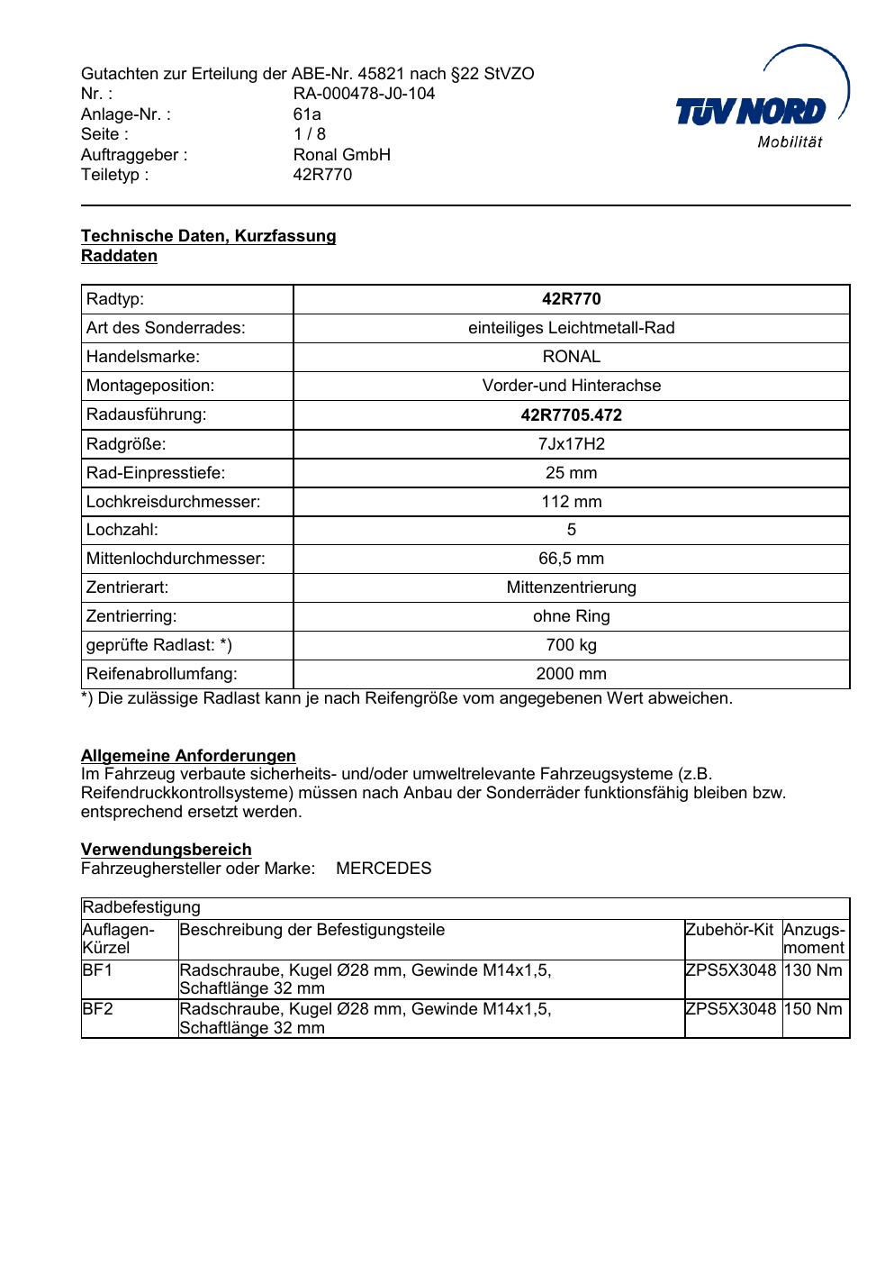 Dieses abe gehört zur Felge Ronal 42R770 in 7Jx17 ET0 mit KBA 45821. Die Seite ist dafür gedacht, dass du schnell prüfen kannst, ob KBA, Design und Größe zu deiner Felge passen und danach direkt das richtige PDF lädst.