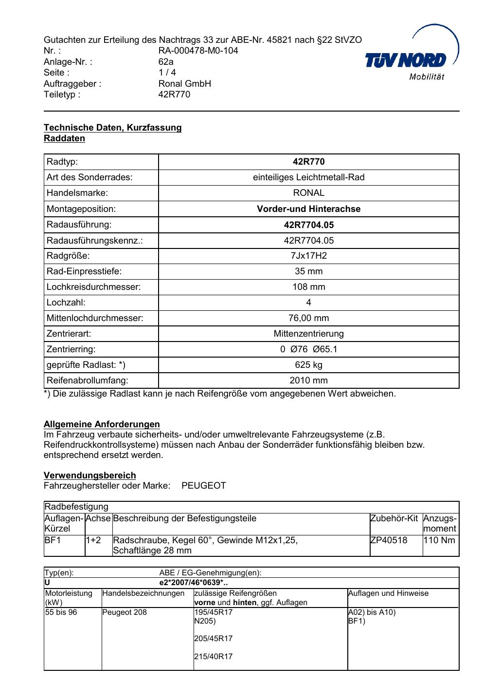 Dieses abe gehört zur Felge Ronal 42R770 in 7Jx17 ET0 mit KBA 45821. Die Seite ist dafür gedacht, dass du schnell prüfen kannst, ob KBA, Design und Größe zu deiner Felge passen und danach direkt das richtige PDF lädst.