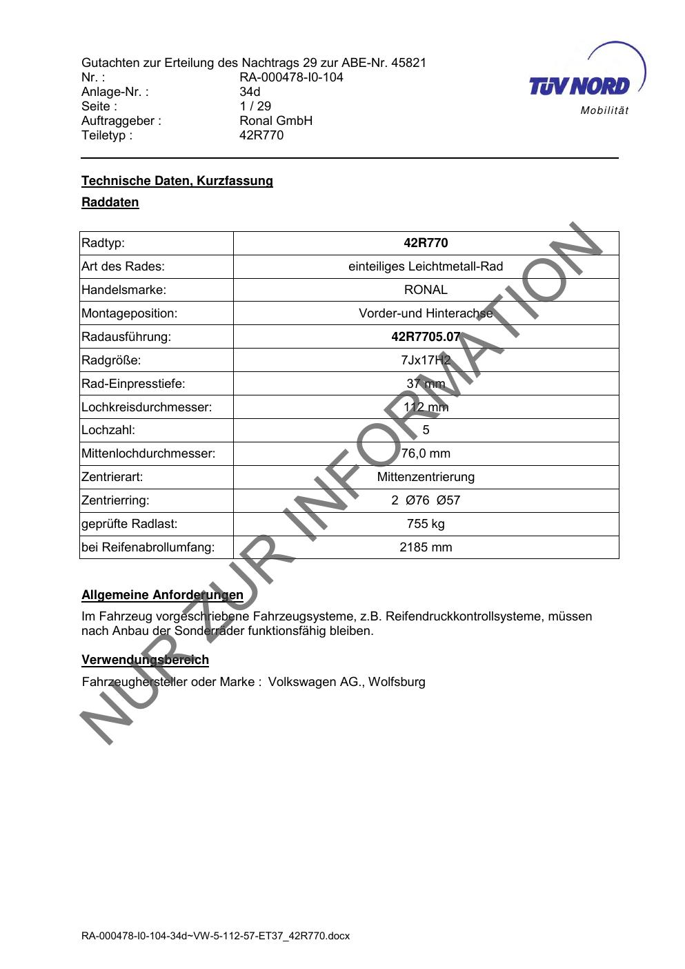 • Stimmt die KBA-Nummer auf der Felge mit diesem Dokument überein?