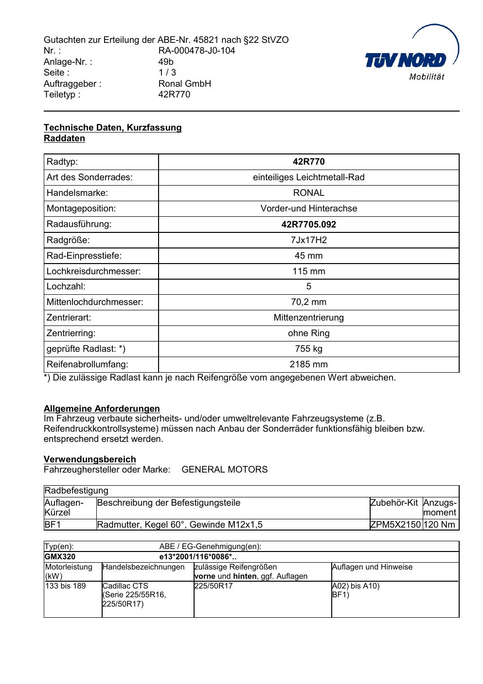 Dieses abe gehört zur Felge Ronal 42R770 in 7Jx17 ET0 mit KBA 45821. Die Seite ist dafür gedacht, dass du schnell prüfen kannst, ob KBA, Design und Größe zu deiner Felge passen und danach direkt das richtige PDF lädst.