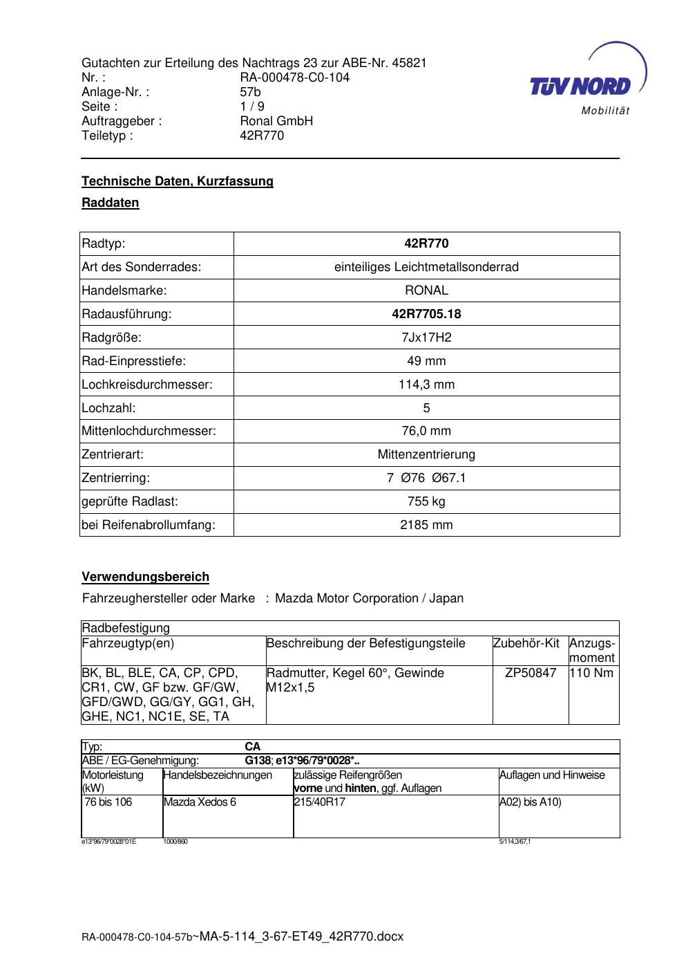 Dieses abe gehört zur Felge Ronal 42R770 in 7Jx17 ET0 mit KBA 45821. Die Seite ist dafür gedacht, dass du schnell prüfen kannst, ob KBA, Design und Größe zu deiner Felge passen und danach direkt das richtige PDF lädst.