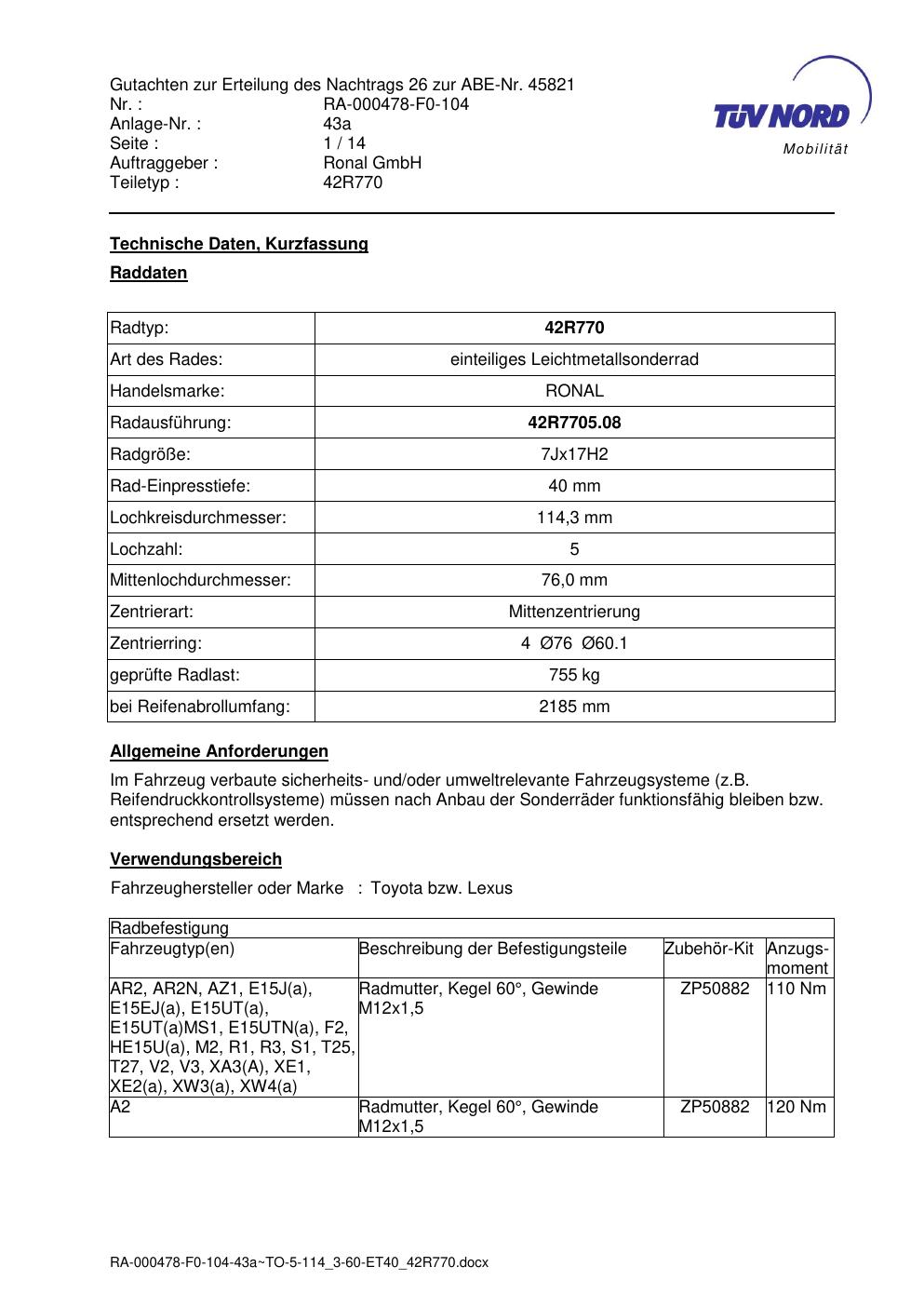 Dieses abe gehört zur Felge Ronal 42R770 in 7Jx17 ET0 mit KBA 45821. Die Seite ist dafür gedacht, dass du schnell prüfen kannst, ob KBA, Design und Größe zu deiner Felge passen und danach direkt das richtige PDF lädst.