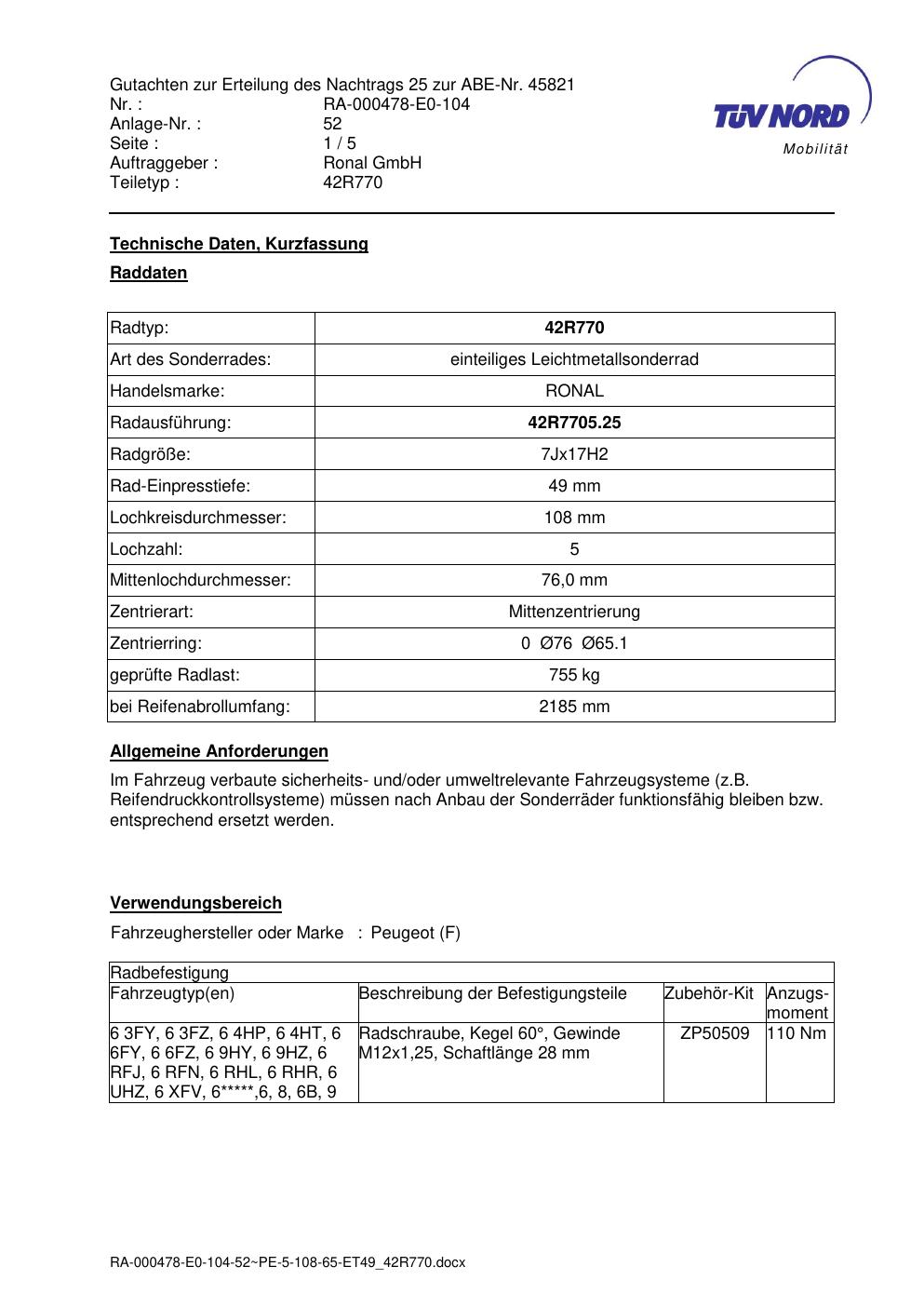 Dieses abe gehört zur Felge Ronal 42R770 in 7Jx17 ET0 mit KBA 45821. Die Seite ist dafür gedacht, dass du schnell prüfen kannst, ob KBA, Design und Größe zu deiner Felge passen und danach direkt das richtige PDF lädst.