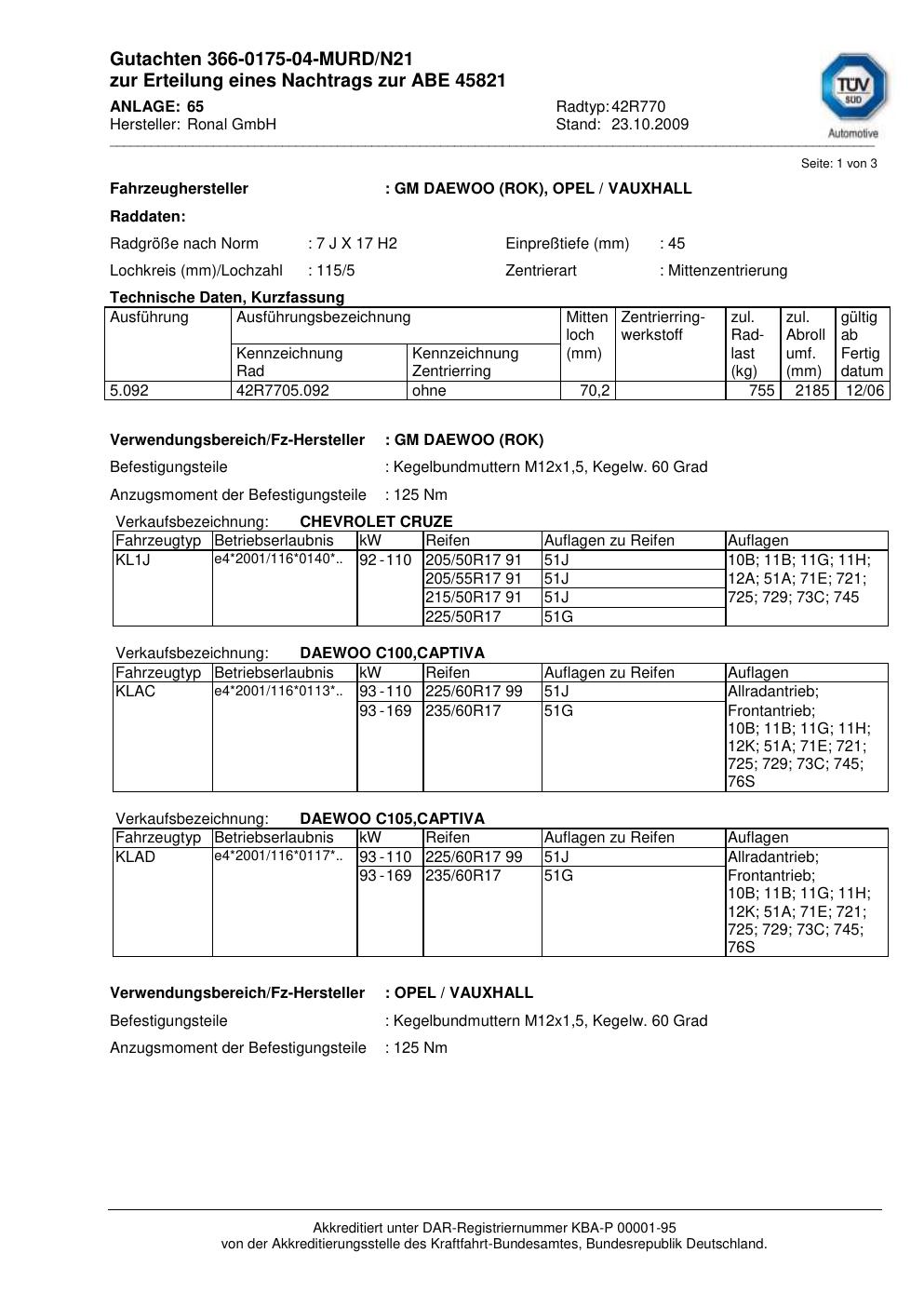 • Stimmt die KBA-Nummer auf der Felge mit diesem Dokument überein?