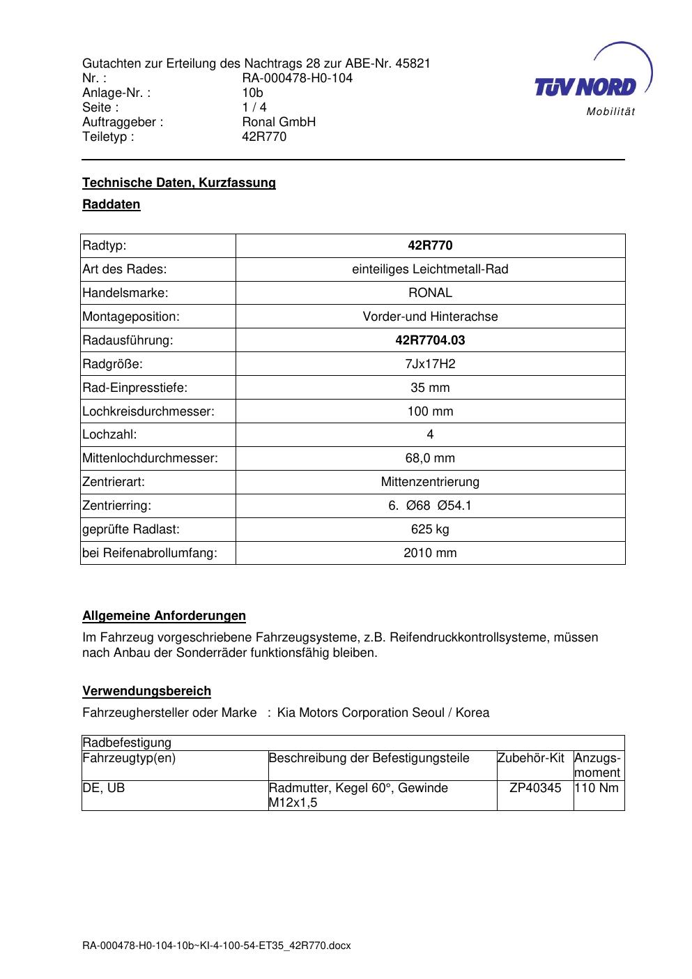 • Stimmt die KBA-Nummer auf der Felge mit diesem Dokument überein?