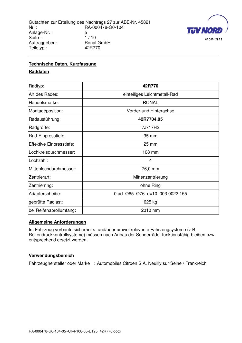 Dieses abe gehört zur Felge Ronal 42R770 in 7Jx17 ET0 mit KBA 45821. Die Seite ist dafür gedacht, dass du schnell prüfen kannst, ob KBA, Design und Größe zu deiner Felge passen und danach direkt das richtige PDF lädst.