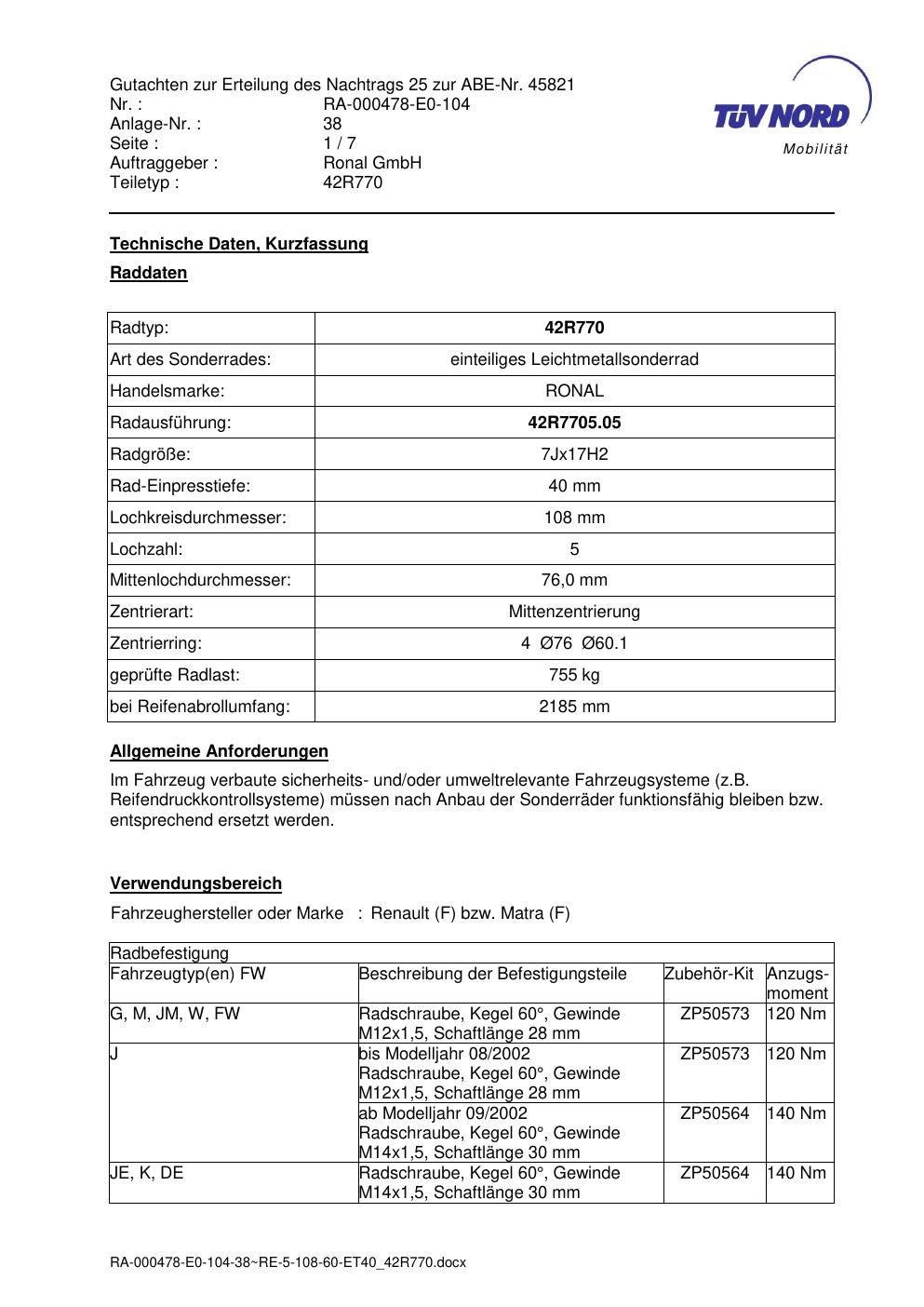 Dieses abe gehört zur Felge Ronal 42R770 in 7Jx17 ET0 mit KBA 45821. Die Seite ist dafür gedacht, dass du schnell prüfen kannst, ob KBA, Design und Größe zu deiner Felge passen und danach direkt das richtige PDF lädst.