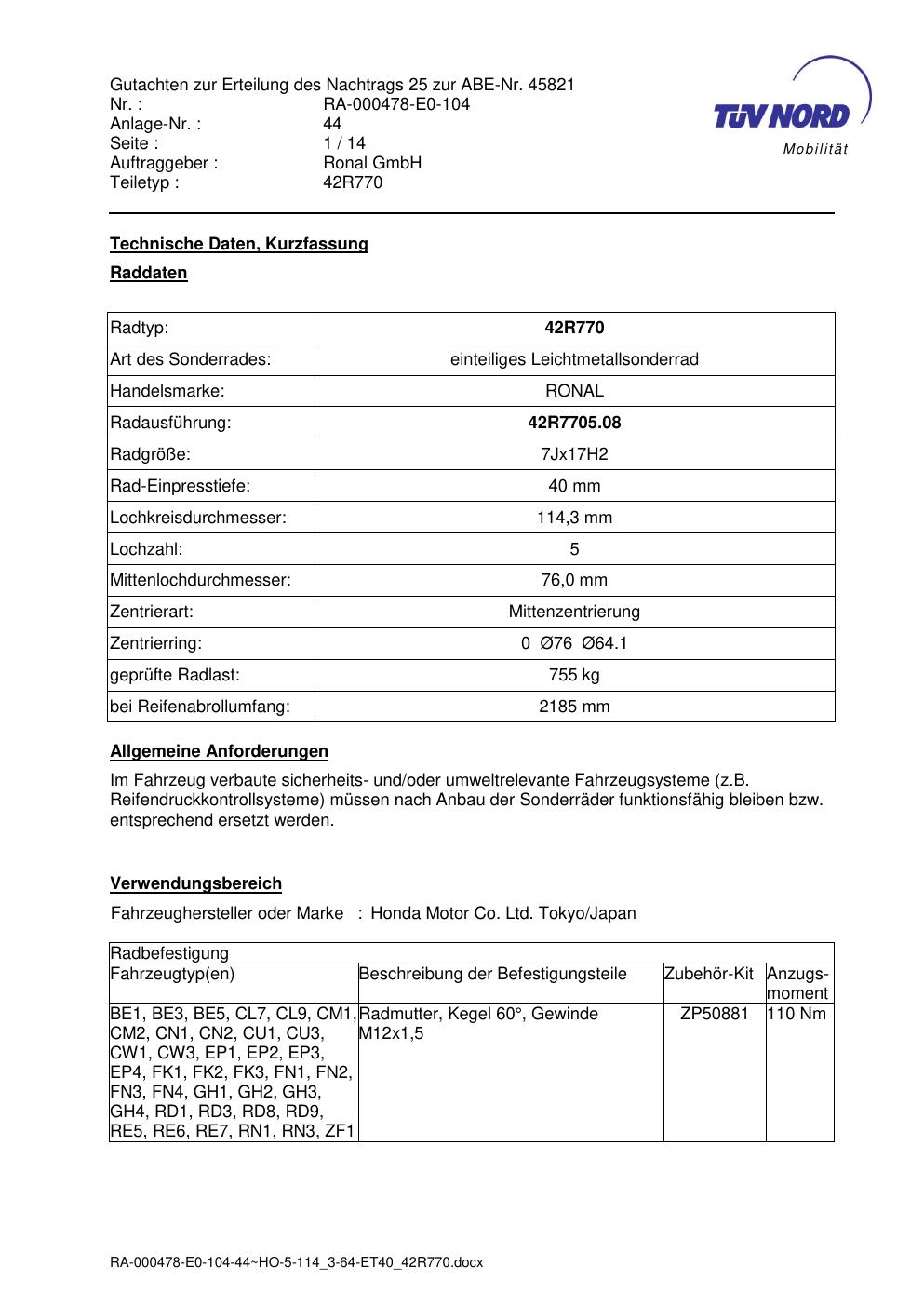 Dieses abe gehört zur Felge Ronal 42R770 in 7Jx17 ET0 mit KBA 45821. Die Seite ist dafür gedacht, dass du schnell prüfen kannst, ob KBA, Design und Größe zu deiner Felge passen und danach direkt das richtige PDF lädst.